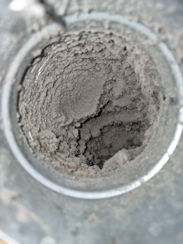 Deretter børster vi oss gjennom alle kanalene med en roterende børste. Alt av støv og dritt går rett i støvsugeren og kanalene blir rene og pene.